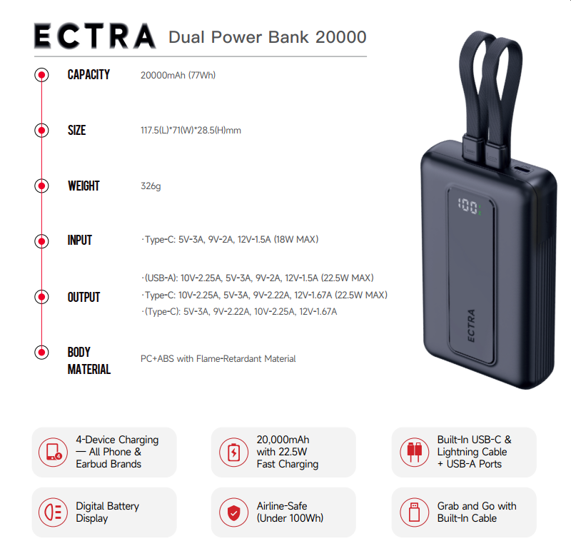 ECTRA Dual Power Bank 20000