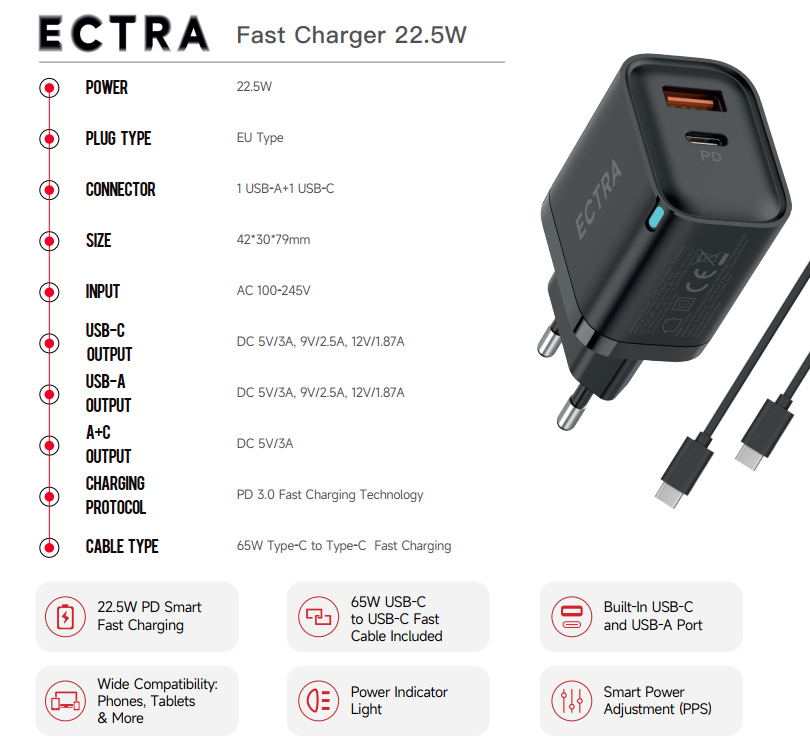 HomeChargerECTRA Fast Charger 22.5W